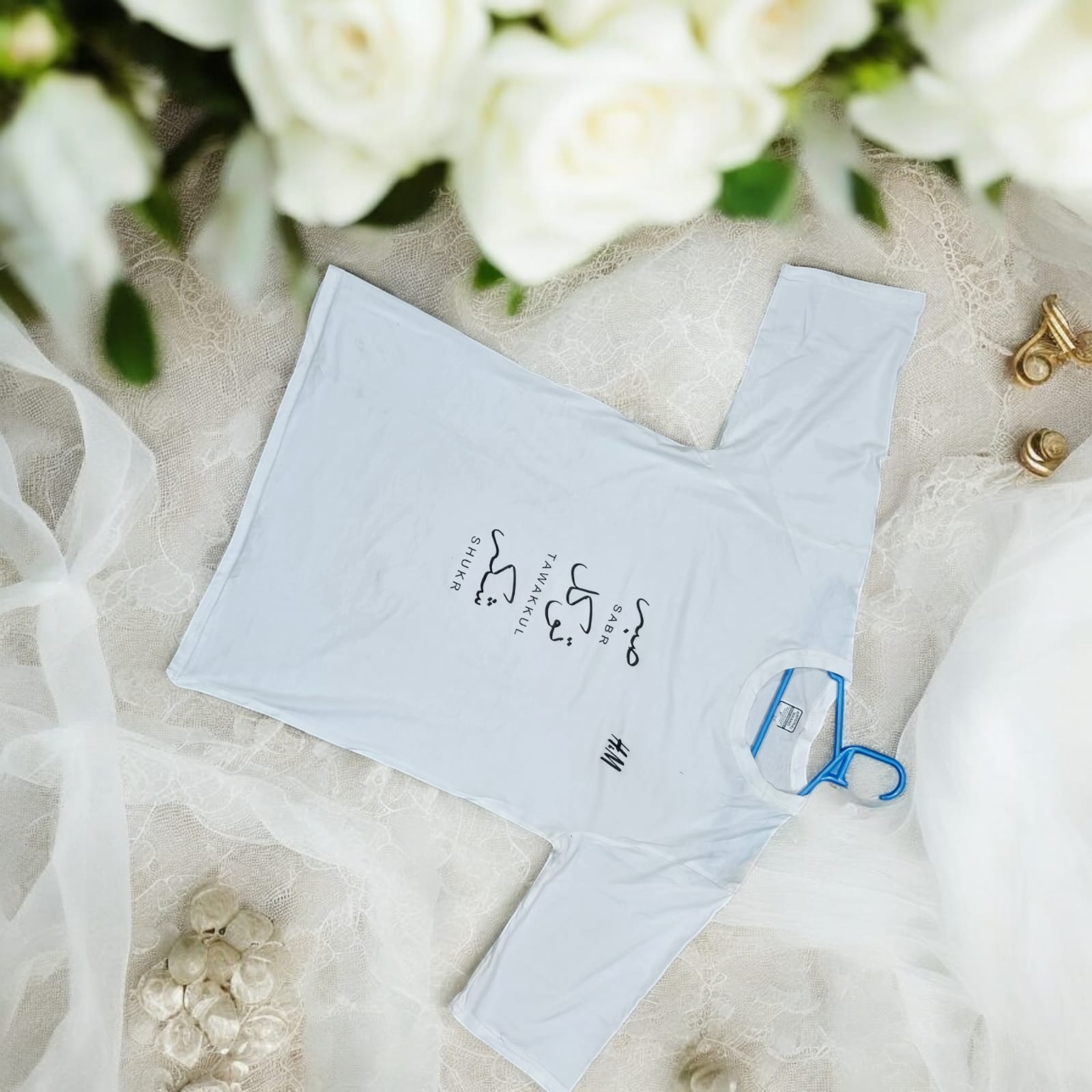 Bring your faith and fashion together with our elegant Virtues Arabic Calligraphy T-Shirt. Featuring the powerful words Sabr (Patience), Tawakkul (Trust in Allah), and Shukr (Gratitude) in beautiful Arabic script, this premium white t-shirt is more than just clothing — it's a reminder to carry spiritual strength with you every day.